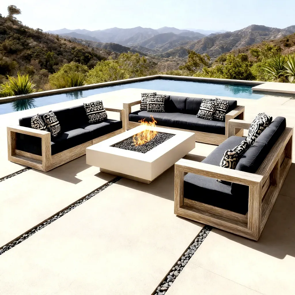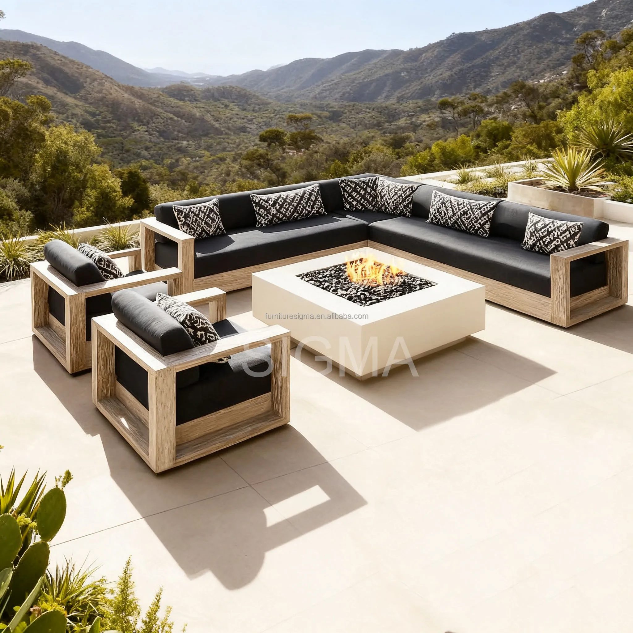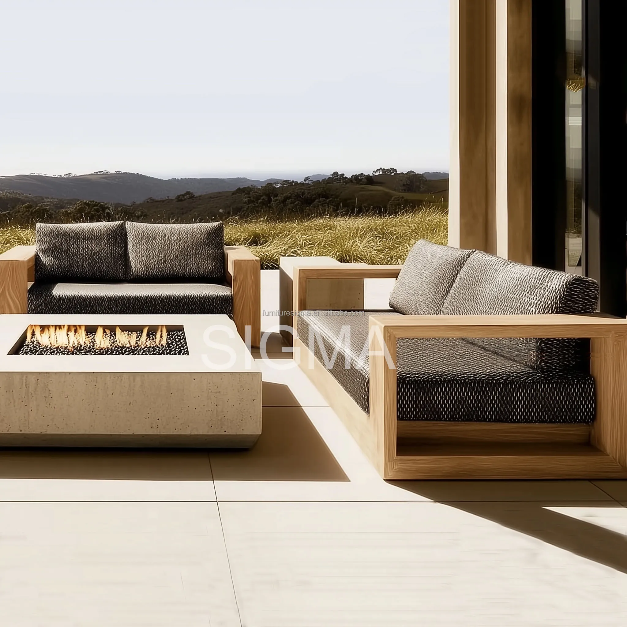All day waterproof sofa, outdoor teak wood sofa, solid wood garden furniture sofa set