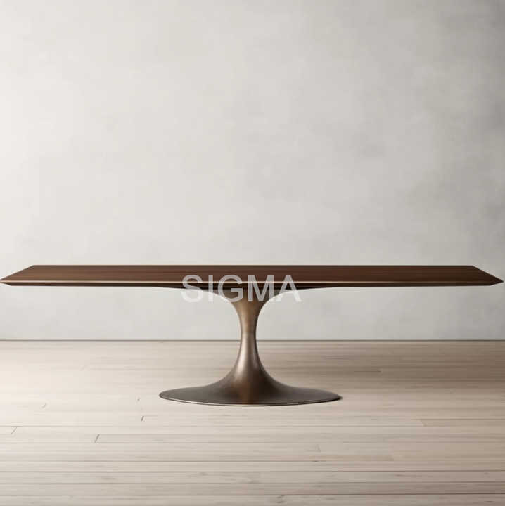Customized Wood Top Restaurant Dining Table Set For 8 Stainless Steel Base Wooden Table
