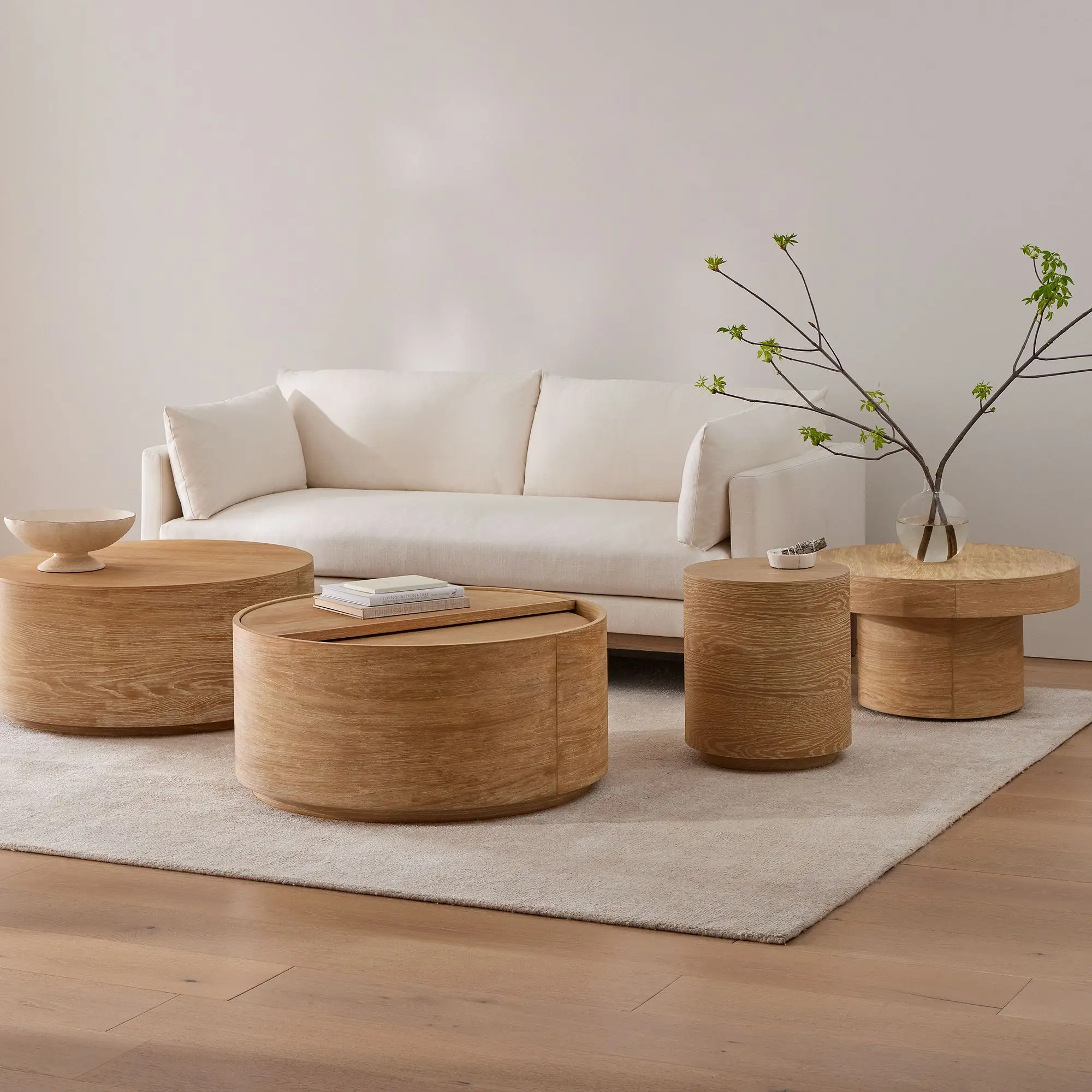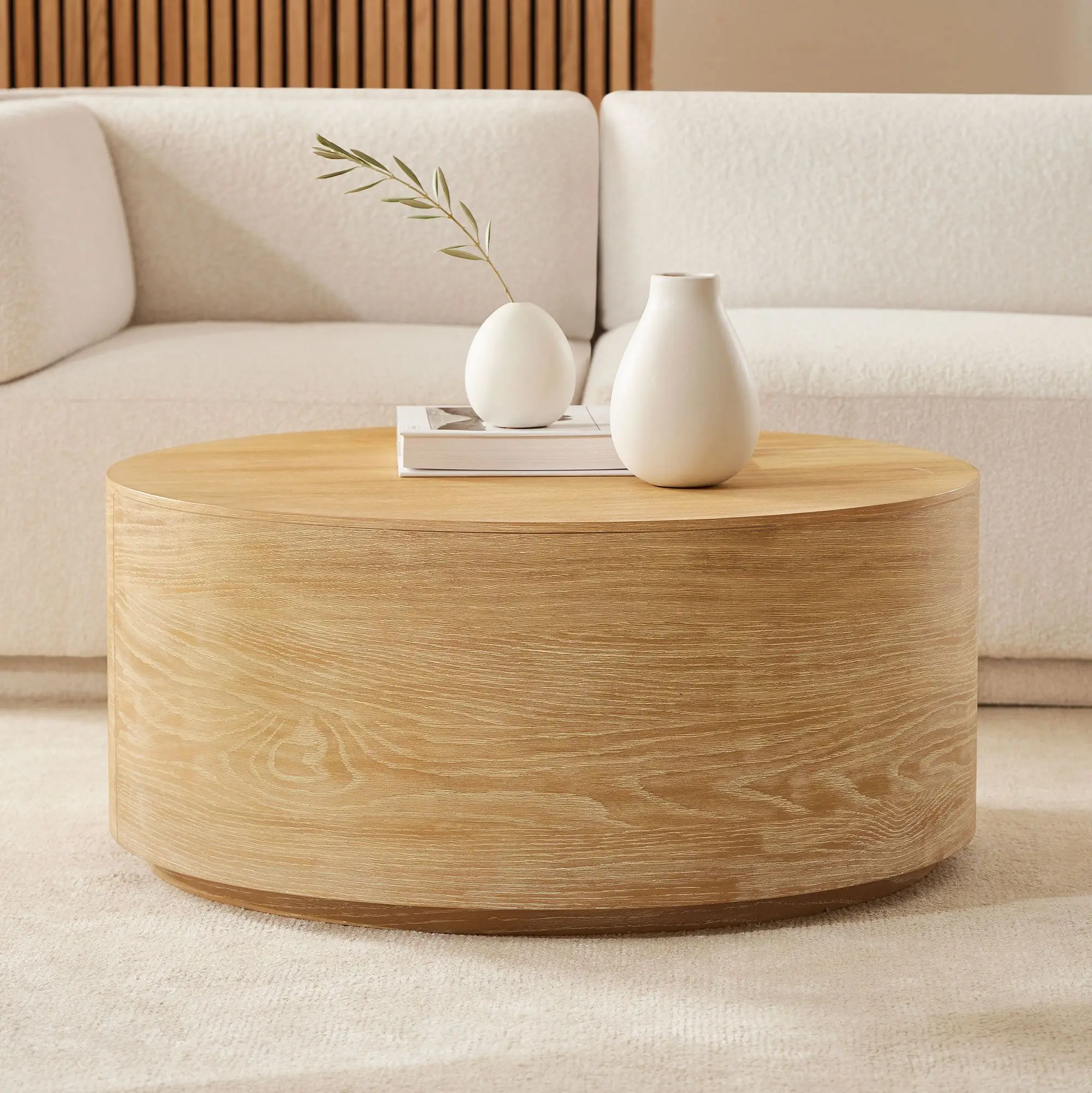 High End Custom Durable Modern Wooden Oak Top Frame Round Living Room Home Furniture Luxury Side Center Coffee Tea Table