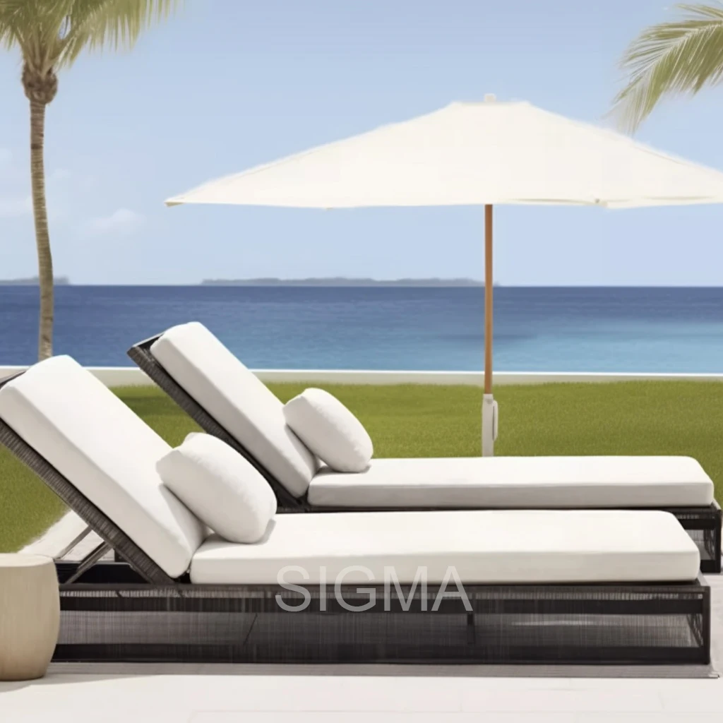 Luxury Garden Lounge Set Rope Woven Beach Sun Bed All-weather Lounge Sofa Outdoor Chaise Lounge