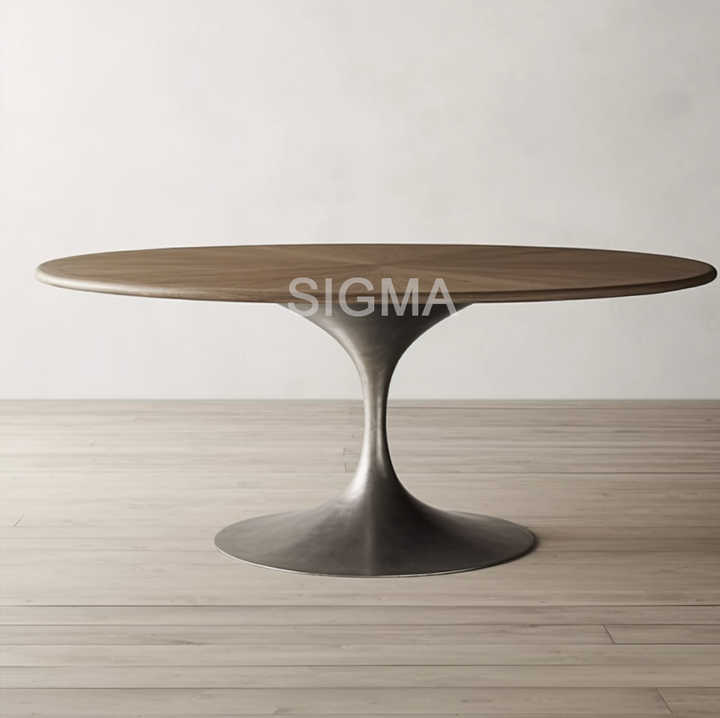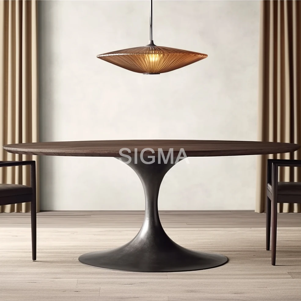 Modern Special Wooden Living Room Table Round Dining Table Stain Steel Base Table