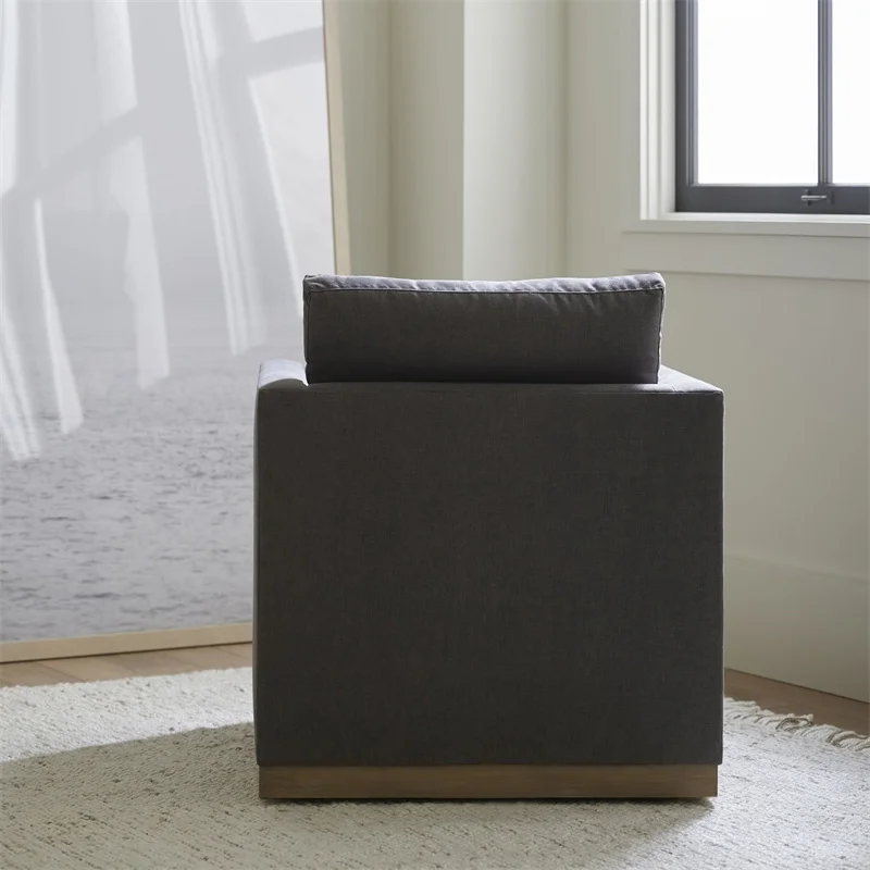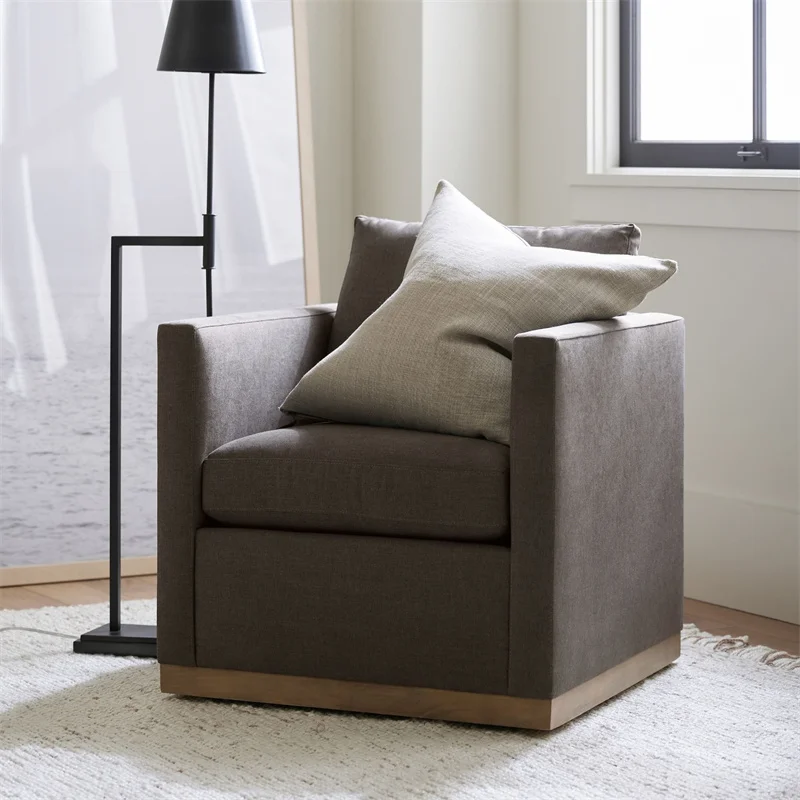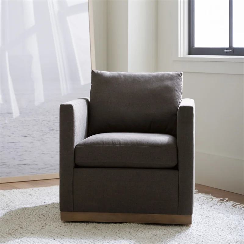 * INSIDE SEATING:24" w x 21.5" d x 19" h * ARM:3" w x 32" d x 26.5" h * SWIVEL MECHANISM:28" diam * SEAT HEIGHT:19" * BACK FRAME:26.5" * DIAGONAL DEPTH:27" |