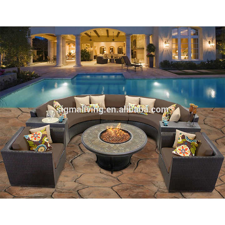 Simple design factory direct outdoor furniture curved rattan luxury round sofa set