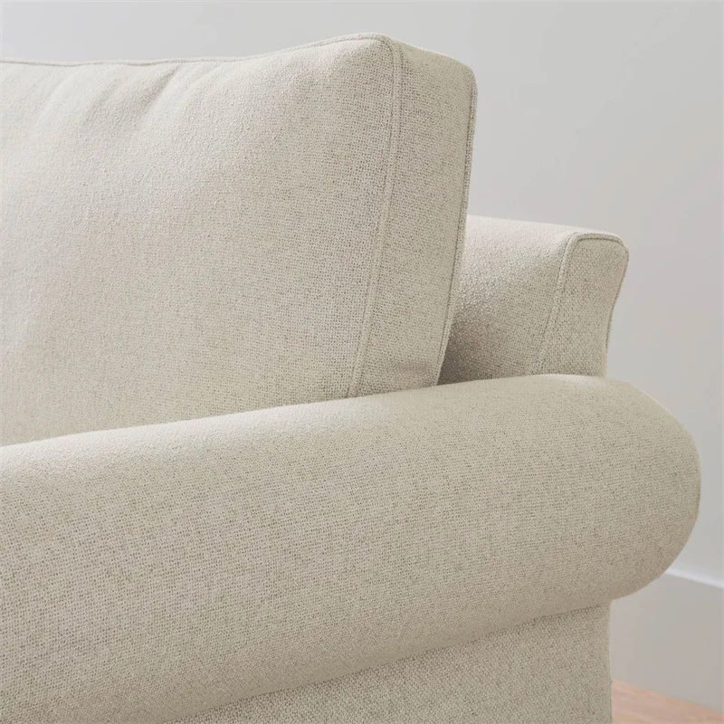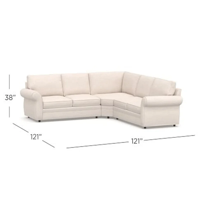 * INSIDE SEATING:101" w x 24" d (loveseat to wedge) x 20.5" h * ARMS:9" w x 40" d x 27" h * LEGS:2.25" w x 1.75" h * SEAT HEIGHT:20.5" * BACK FRAME:31" * DIAGONAL DEPTH:33" |